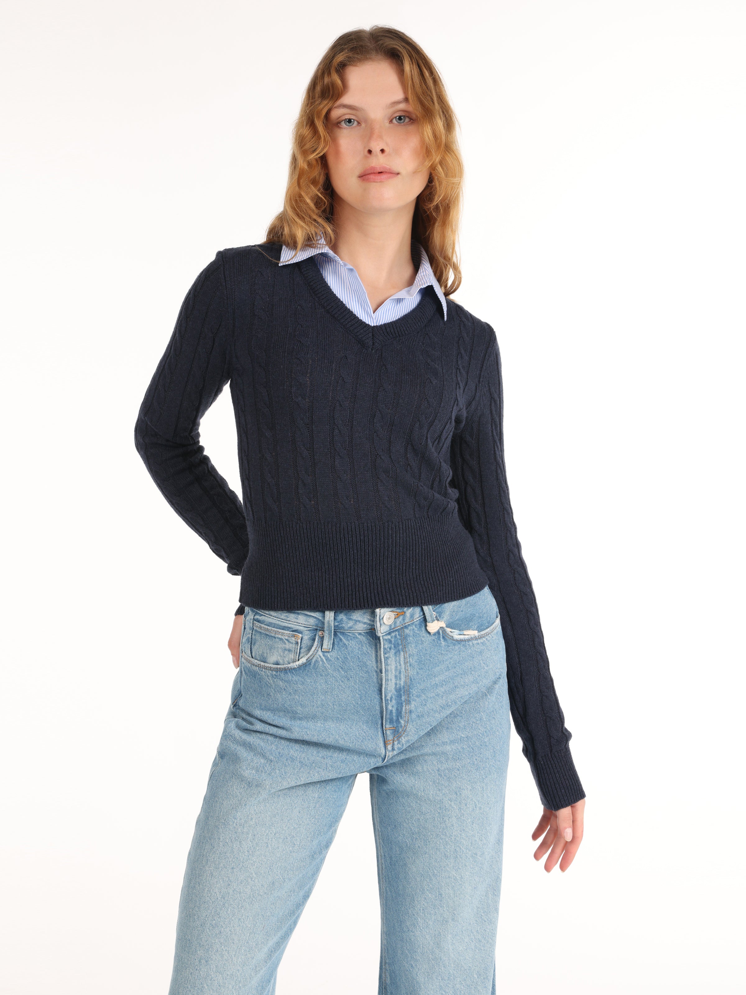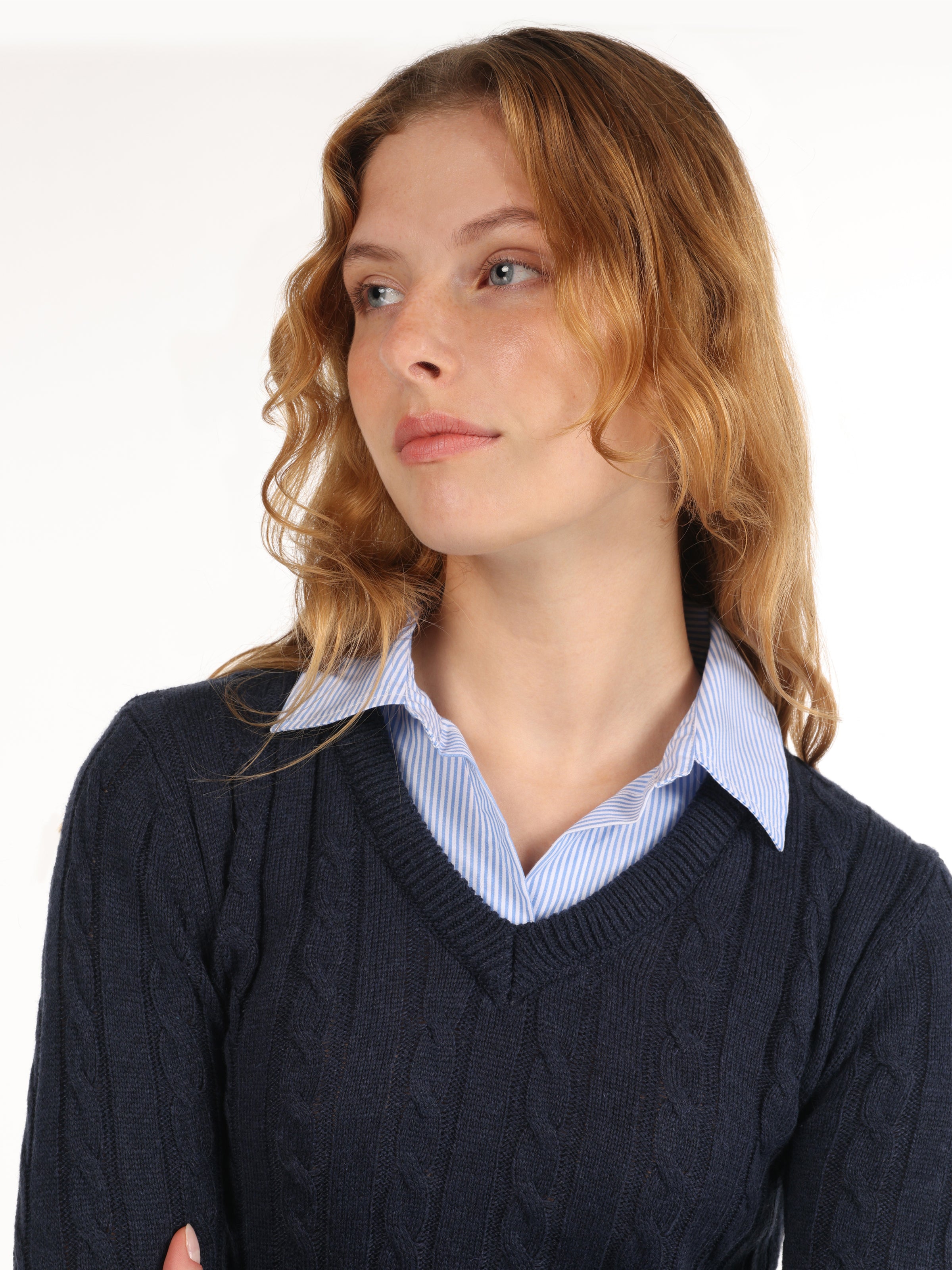 بولوفر نسائي من كولينز، ناعم ودافئ، تصميم بسيط يضيف لمسة أنوثة لإطلالتك في الأجواء الباردة.