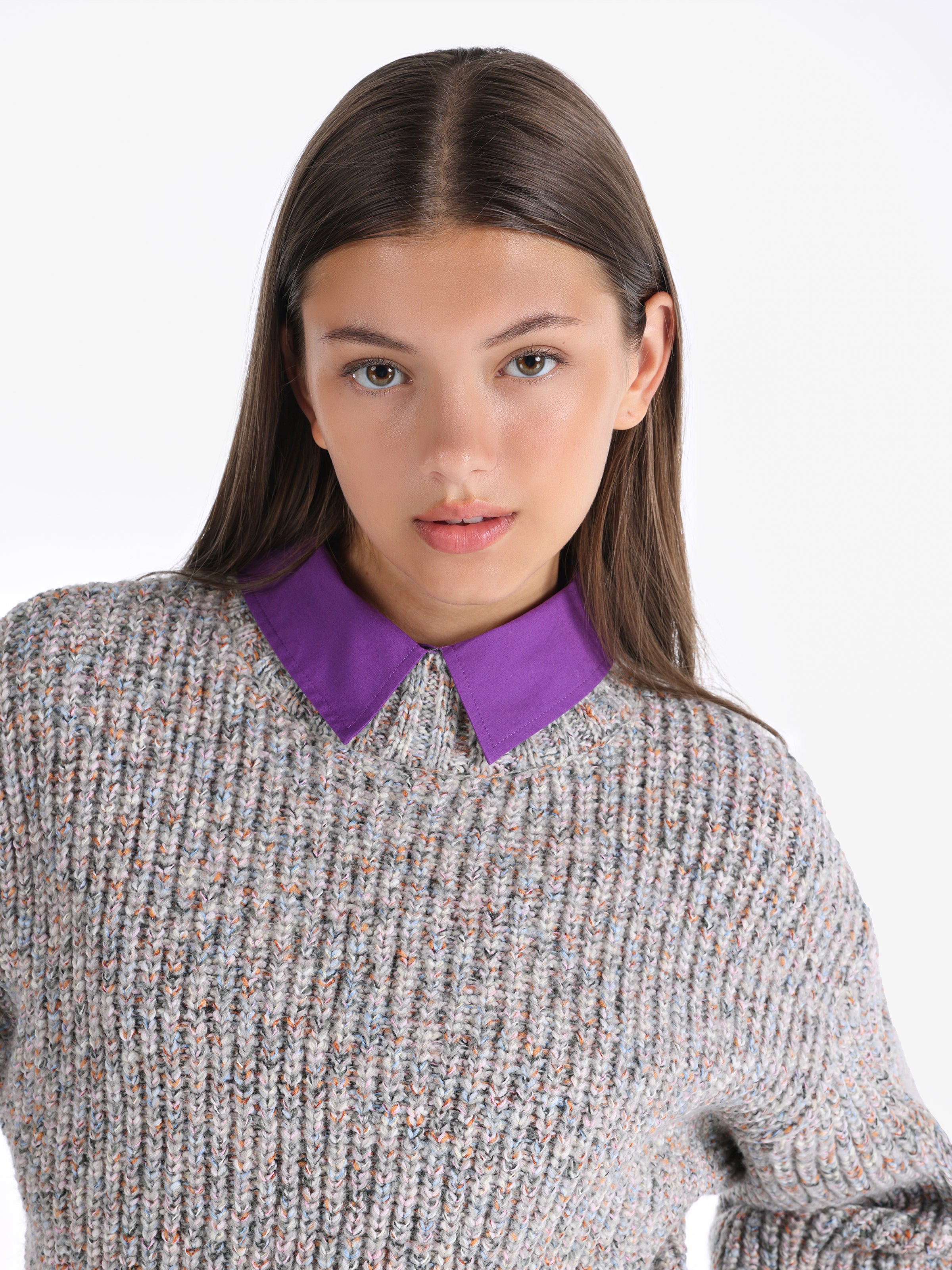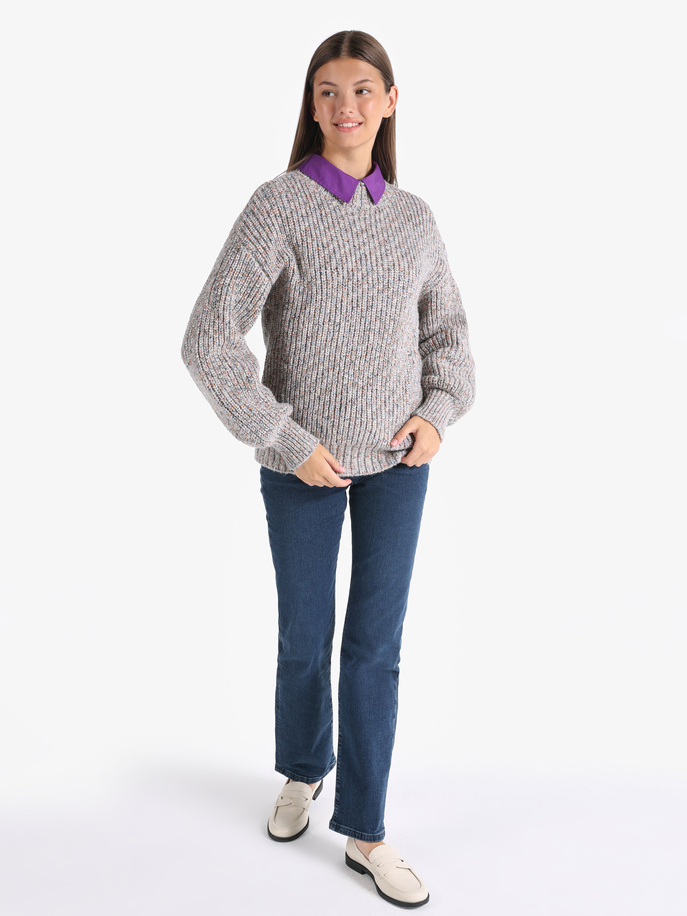 بولوفر نسائي من كولينز، ناعم ودافئ، تصميم بسيط يضيف لمسة أنوثة لإطلالتك في الأجواء الباردة.
